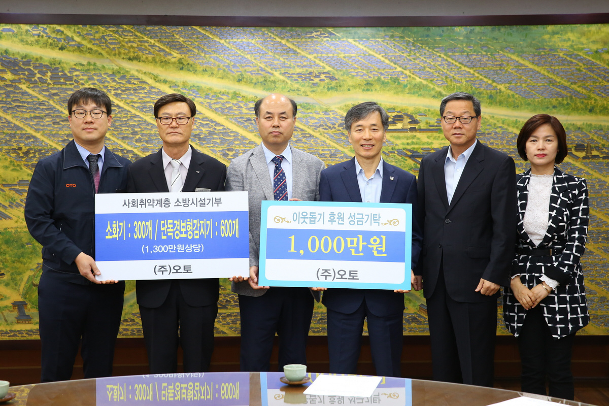 [이재영 기자] ㈜오토인더스트리에서는 9일 경주시청을 방문해 경북사회복지공동모금회를 통한 1,300만원 상당의 기초소방기기와 1,000만원의 성금을 어려운 이웃을 위해 기탁했다.