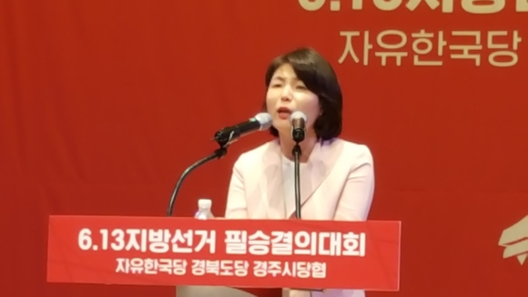 전희경 자유한국당 대변인은 "드루킹 댓글 조작사건으로 대한민국의 민주주의의 근간이 부너져 내리고 있다" "경북의 선봉 경주에서 필승을 넘어 23명의 후보를 압승으로 당선시켜 위기에 처한 대한민국을 바로 잡아야 한다"라며 "삼국을 통일한 경주에서 보수통합이 시작되어 전국으로 바람이 이어지게 해달라"며 열변을 토했다.