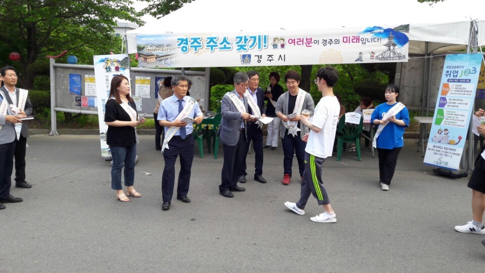 이번 캠페인에는 경주시 시정새마을과(과장 신태윤), 성건동주민센터(동장 최정환), 대학 인재개발처(처장 김신재), 학생회(회장 김지수)에서 경주 주소 갖기 취지를 공감하고 다 같이 참여하여 취업, 경주시민 혜택, 전입신고 등을 안내하는 홍보 리플릿을 대학생들에게 배부하고 현지 상담을 통해 학생들의 인식을 조사하는 한편, 참여 학생에게 즉석에서 전입신고서를 배부하고 작성요령을 안내하는 등 대학생 주소 갖기를 위한 다양한 활동을 펼쳤다.