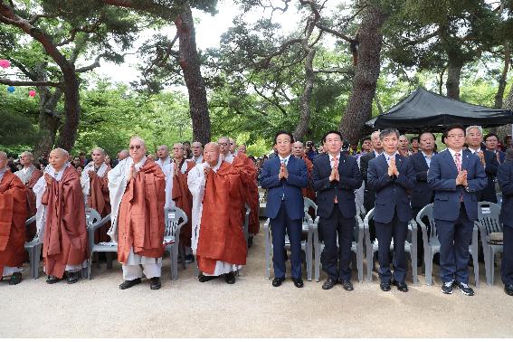 이날 주지 종우스님과 회주 성타스님, 김관용 경상북도지사, 강철구 경주시 부시장, 이철우 자유한국당 경북도지사 예비후보, 주낙영 자유한국당 경주시장 예비후보, 임배근 더불어 민주당 경주시장 예비후보, 정재훈 한국수력원자력(주) 사장을 비롯해 사부대중 6,000여명이 참석한 가운데 법요식이 봉행됐다.