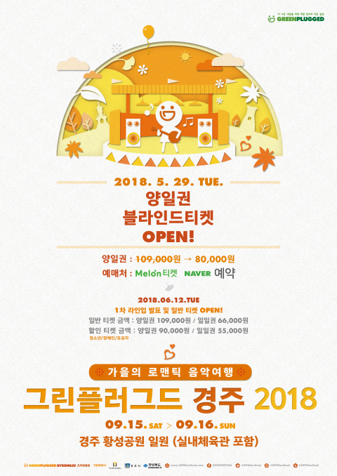 [이재영 기자] ‘가을의 로맨틱 음악여행’<그린플러그드 경주 2018>(이하, 그린플러그드 경주)의 블라인드 티켓 예매가 오픈 된다.