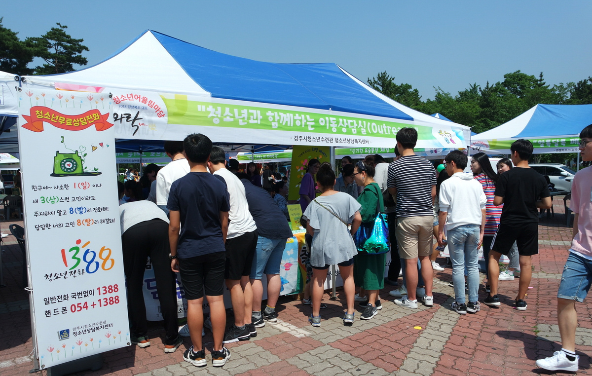 [이재영 기자] 경주시 청소년수련관에서는 지난 26일 청소년상담복지센터 주관으로 ‘청소년 화랑문화제’ 행사장인 황성공원을 찾아, 청소년과 함께하는 이동상담실(Out-reach, 찾아가는 거리상담)을 운영했다.