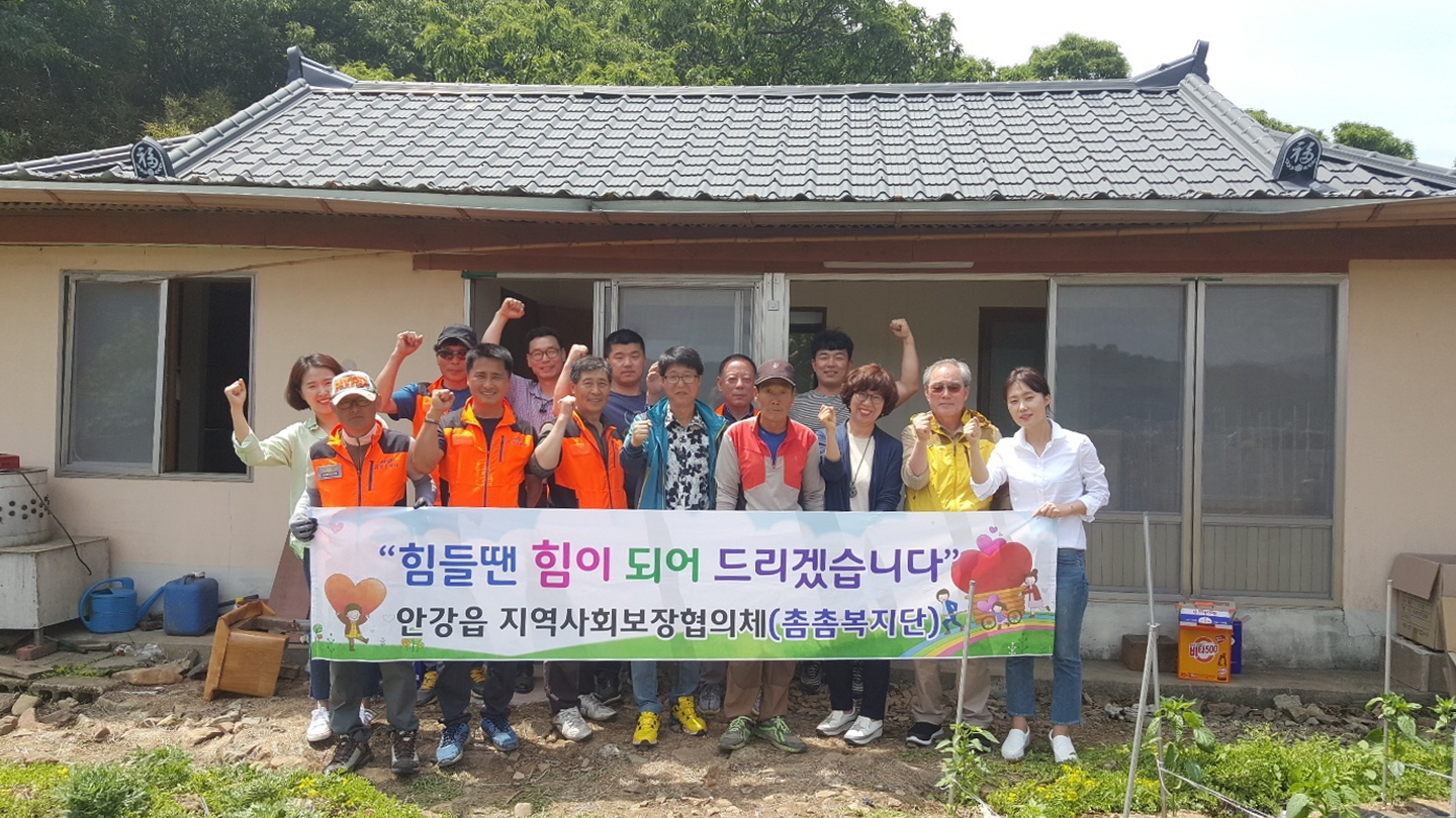 안강읍 지역사회보장협의체는 ‘촘촘복지단’이라는 별칭으로 활동하며 복지위기가구 발굴 및 지원을 위한 자발적 민·관 협력 복지 네트워크 조직을 구축하고, 재능기부를 통한 집수리사업인 ‘수리수리마수리’와 오지 경로당 어르신을 위한 ‘행복바라지’ 등 특화사업을 추진하며 지역에 헌신하고 있다.