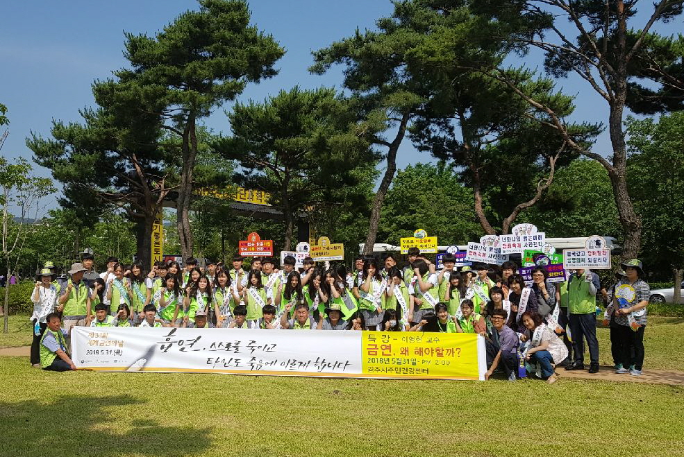 올해 세계금연의 날 주제는 ‘흡연, 스스로를 죽이고 타인도 죽음에 이르게 합니다(Tobacco breaks hearts. choose health, not tobacco)’로써, 이날 기념행사는 식전 금연퍼포먼스에 이어 금연사업의 성과 영상 상영, 김장희 보건소장의 기념사와 이영현 동국대학교 교수의 특강, 거리캠페인 등으로 진행됐다.