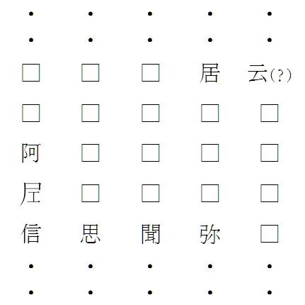 가장 글자가 많이 남은 열은 5열이다. 5열 3∼5행에는 차례로 아(阿), 니(尼에서 匕 대신 工), 신(信)이 보인다.