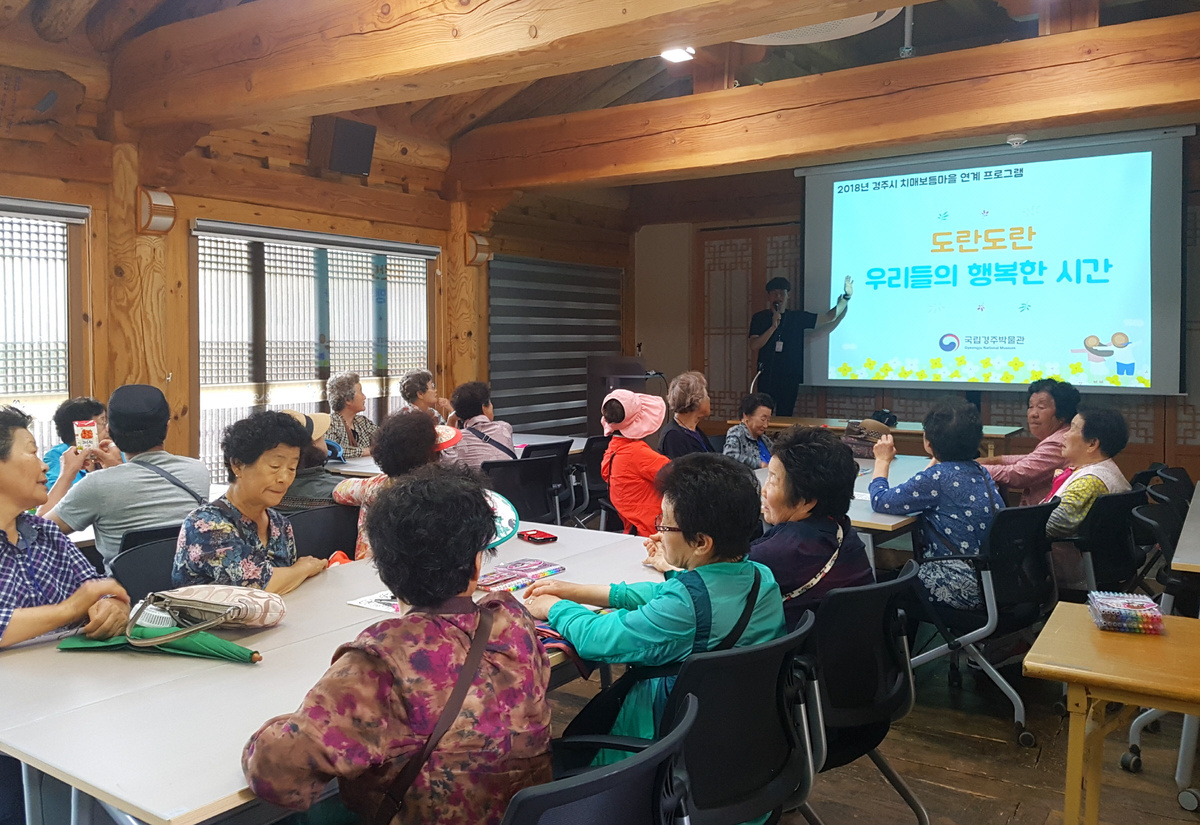이번 프로그램은 주민들의 문화 접근성을 향상하고 진행 중인 ‘치매보듬마을 조성사업’의 원활한 추진을 위해 국립경주 박물관과 업무 협약을 체결, 문화재 체험 프로그램을 마련하게 됐다.