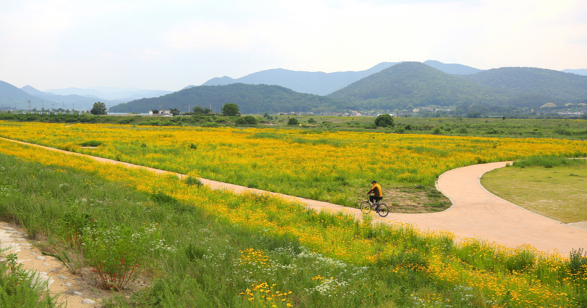 걷기와 자전거 트래킹 코스로 각광받는 형산강 둔치에서 다소 접근성은 낮은 장소이지만, 금계국이 만개하는 이즈음만큼은 샛노란 꽃물결 사이로 지나는 이들의 시선과 발길을 사로잡으며 여유로운 풍경을 사진에 담으려는 사람들로 인기를 끈다.