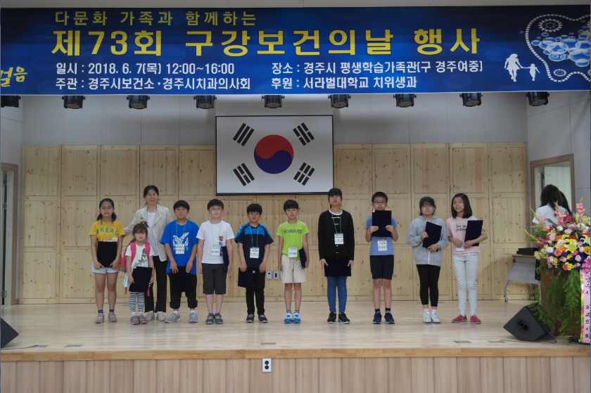 [이재영 기자] 경주시 보건소에서는 지난 7일 평생학습가족관에서 다문화가족 및 경주시민 150여명을 대상으로 구강건강 증진 및 구강보건 향상과 홍보를 위한 ‘제73회 구강 보건의 날 행사 및 홍보관 운영’을 실시했다.