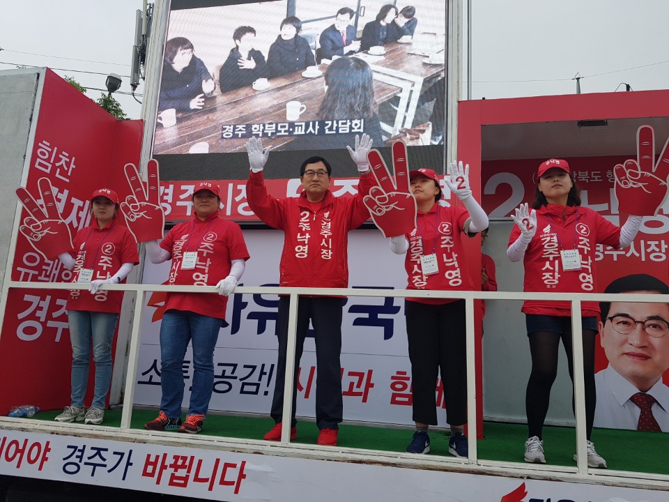 그는 “시장과 국회의원, 도지사는 같은 당이라야 서로 긴밀히 소통, 협력하면서 국·도비 예산을 많이 확보해 경주를 발전시킬 수 있다”며 “압도적인 지지로 시민이 주인되는 경주, 시민 모두가 잘 사는 30만 경제문화도시 경주를 꼭 만들겠다”고 밝혔다.
