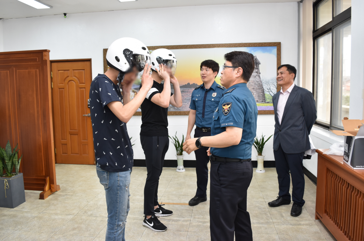 이날 전달식에 참여한 이◯◯군은 “그동안 면허가 없어서 배달 아르바이트 자리가 있어도 하지 못했는데 경찰관 선생님의 도움으로 면허증을 따서 일자리도 구하게 되어 정말 고맙고 앞으로는 교통법규도 잘 지키며 주신 핼멧도 꼭 쓰고 다니겠다.”며 웃었다.