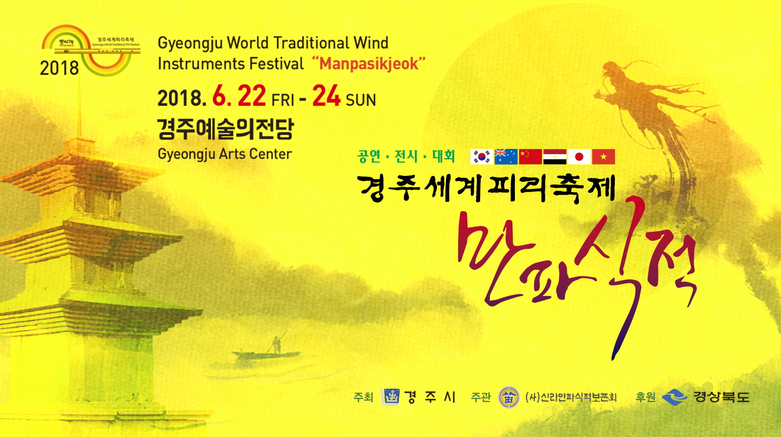 모양과 소리는 달라도 하나의 감동을 전하는 세계 각국의 다양한 전통 피리와 명품 공연을 만날 수 있는 ‘2018 경주세계피리축제 만파식적'이 오는 22일부터 24일까지 3일간 경주 예술의 전당관에서 열린다.