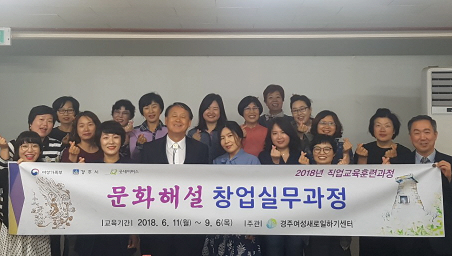 [이재영 기자] 경주여성새로일하기센터(센터장 박용원, 이하 새일센터)는 지난 11일 경주 지역 문화유산 해설 관련 취업을 희망하는 경력단절여성을 20명을 대상으로 직업교육훈련 ‘문화해설 창업실무과정’ 개강식을 가졌다.