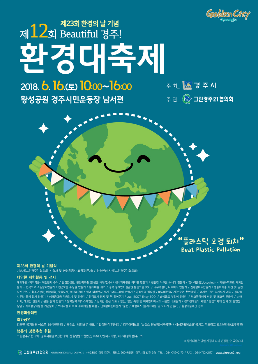 [이재영 기자] 경주시에서 오는 16일 시민들에게 환경보전의 중요성을 전하기 위한 ‘제12회 Beautiful 경주! 환경대축제’가 황성공원 시민운동장 인근에서 열린다.