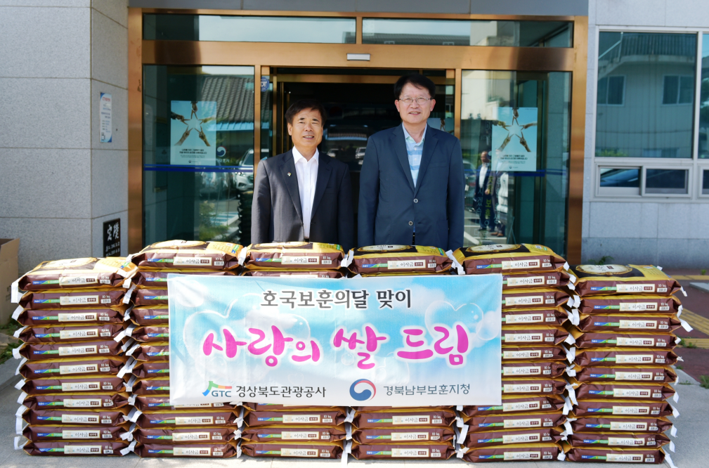 [이재영 기자] 경상북도관광공사(사장대행 이재춘)는 18일 경북남부보훈지청을 찾아 국가와 민족을 위해 희생한 보훈가정에 따뜻한 위로와 감사의 마음을 전하며 쌀 70포대를 전달했다고 밝혔다.
