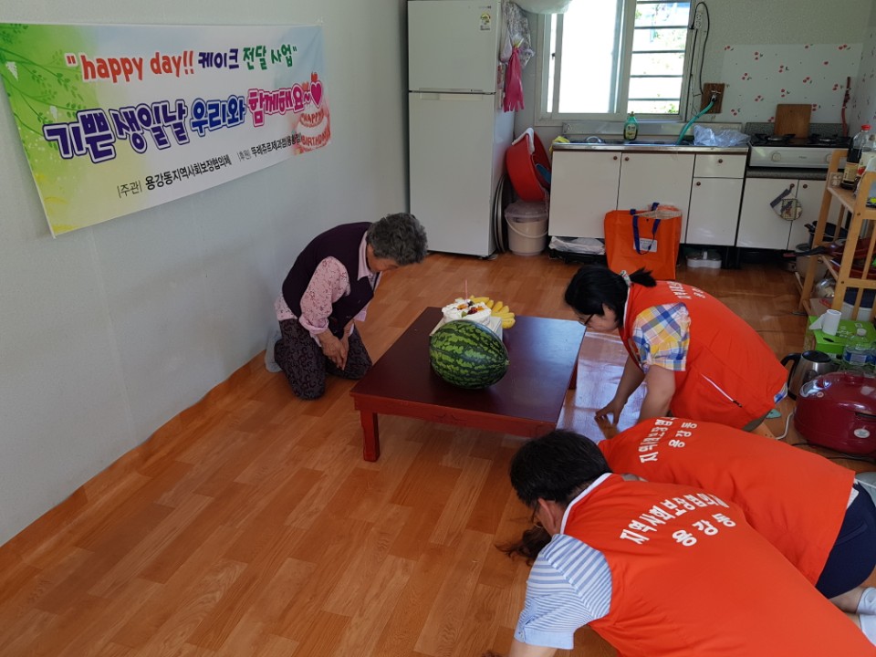 생일케이크 전달사업은 관내 뚜레쥬르제과점(용황점) 후원으로 실시되는 사업으로써, 외롭고 쓸쓸하게 생일을 맞은 독거노인이나 위탁가정아동 등의 가정에 직접 방문해 생일을 축하함과 더불어 특별한 추억을 선물하고 있다.