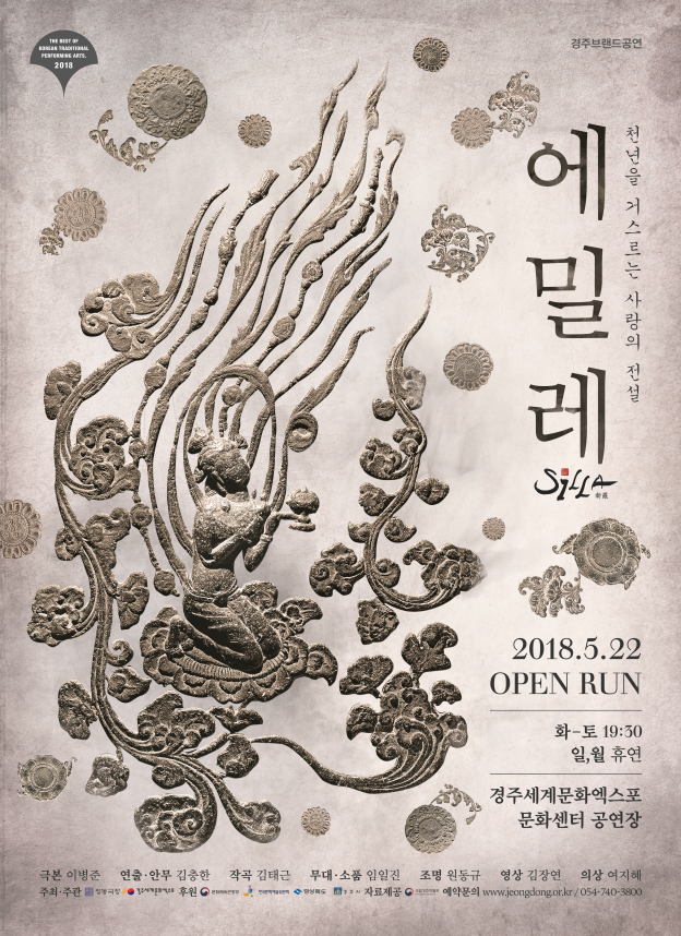 경주의 아름답고 웅장한 문화재의 형상과 함께 시작되는 정동극장 경주브랜드공연 네 번째 이야기 <에밀레>는 천년왕조 신라시대를 배경으로 8세에 등극하여 23세에 요절하고 마는 혜공의 비극적 탄생 설화와 ‘에밀레’라는 가상의 여인을 통해 새로이 창작한 작품으로 무대에 LED영상을 설치해 영상을 통해 석굴암, 불국사, 월정교 등 경주의 다양한 문화재를 입체적인 무대로 선보여 극의 생동감을 70여 분간의 풍부한 볼거리로 풀어낸 공연이다.