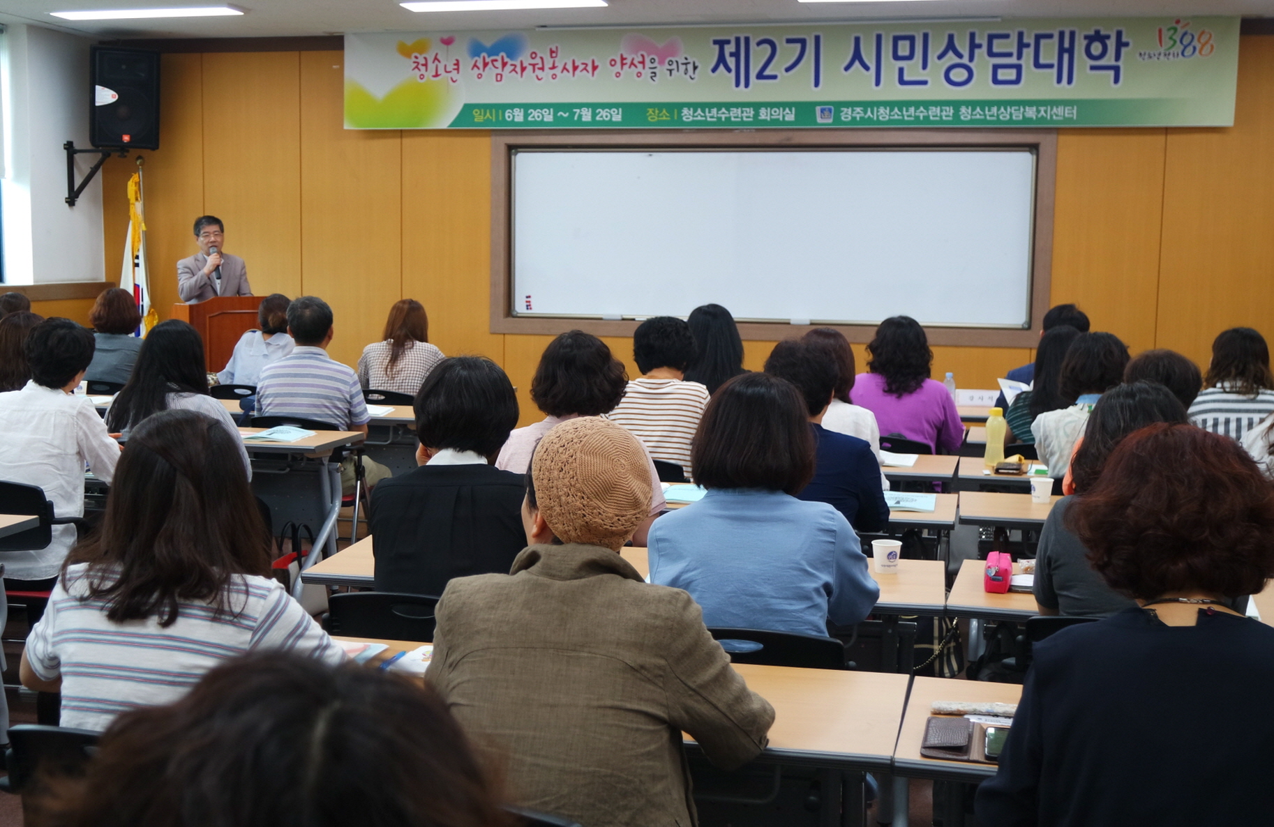 ‘제2기 시민 상담대학’은 청소년 상담자원봉사에 관심 있는 시민들을 위한 청소년상담 입문과정으로, 경주시민들에게 대학강의 수준의 전문적 교육을 제공해 상담 기본이론 교육 및 청소년상담의 이해를 증진하며, 상담자원봉사자 양성을 위해 준비된 교육과정이다.