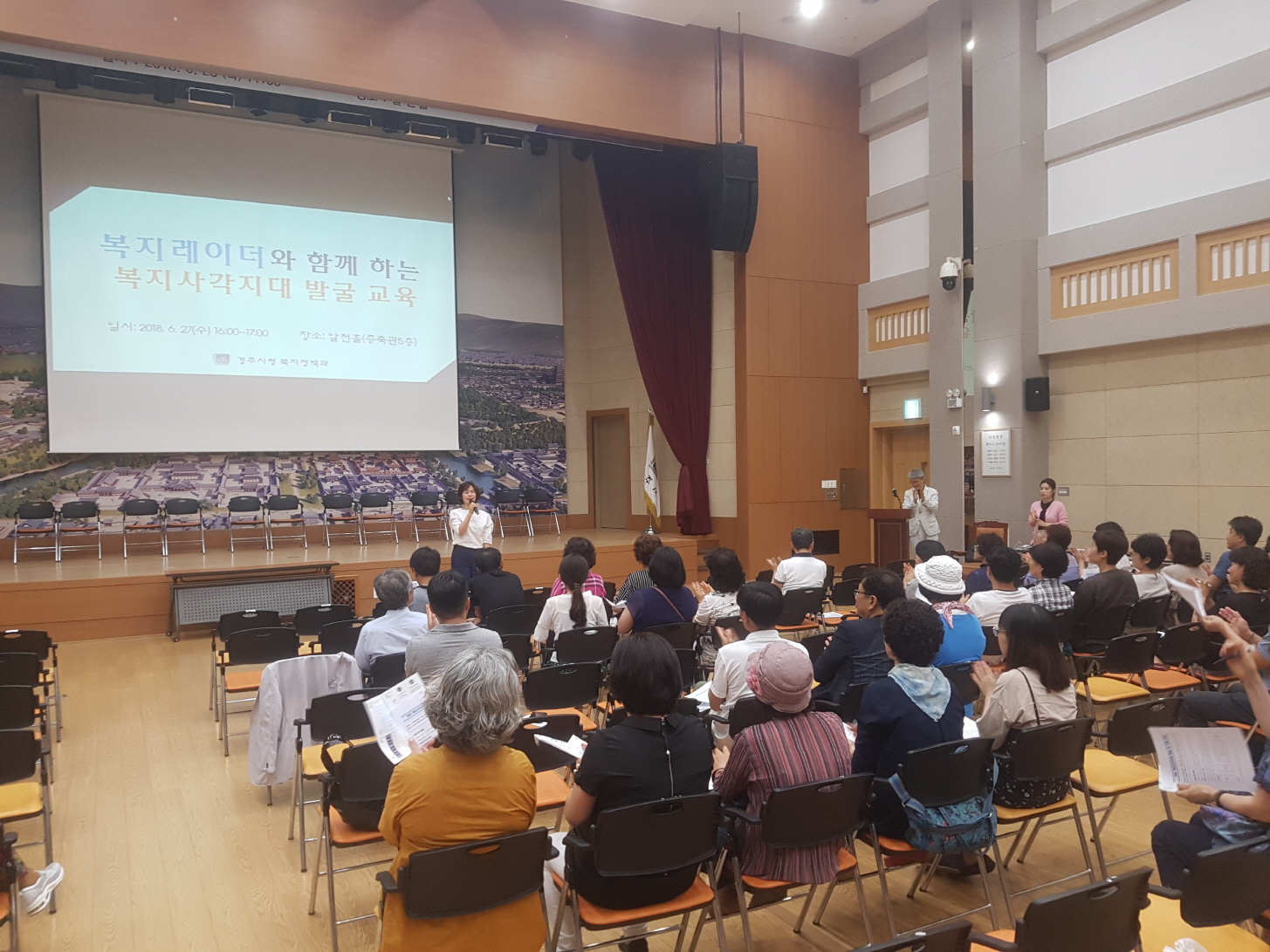 [이재영 기자] 경주시에서는 지난 27일 시청 알천홀에서 고독사 예방과 복지사각지대 발굴을 위해 복지사각지대 발굴 전문가 40여명을 대상으로, 주위 어려운 이웃을 발굴 및 신고하는 ‘복지레이더 역량강화 교육’을 실시했다.