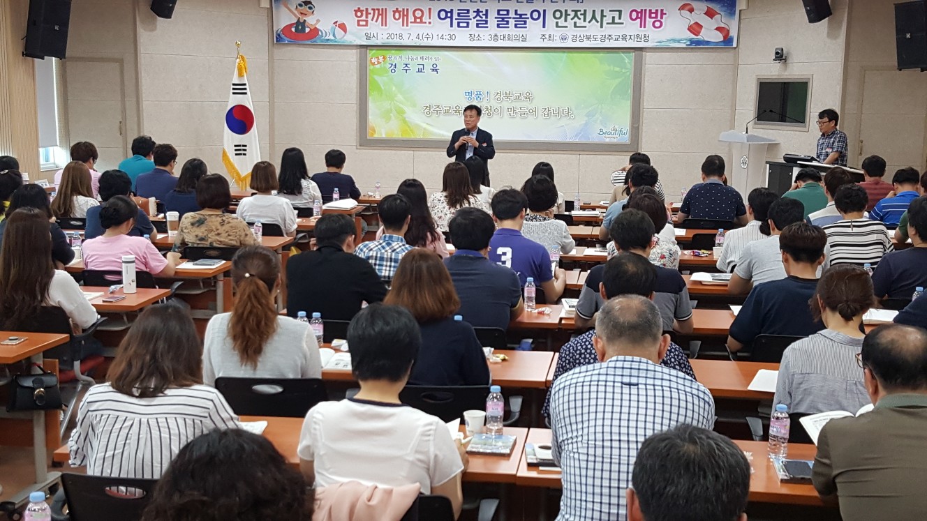 [이재영 기자] 경상북도경주교육지원청(교육장 권혜경)은 4일(수) 오후 2시 30분부터 3층 대회의실에서 관내 유. 초. 중. 고. 특수학교 안전교육 담당교사 101명을 대상으로 물놀이 안전사고 예방교육을 실시했다.