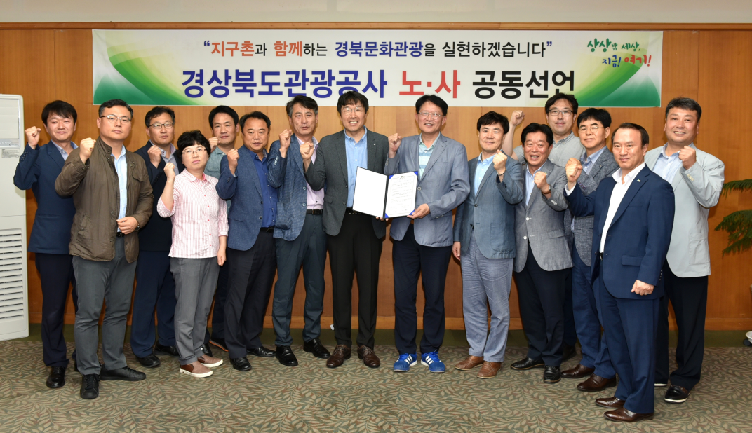 노사공동선언문 주요내용은 민선 7기를 맞이하여 경북 도정에 적극 동참하고, 경북 문화관광 활성화에 앞장선다. 문화관광을 통한 청년 일자리 창출, 조직경쟁력 강화, 상호신뢰 구축 및 상생의 파트너십을 지향하는 노사문화 정착. 청렴한 조직문화 구축 및 도민에게 신뢰받는 공기업 실현 등을 포함했다.