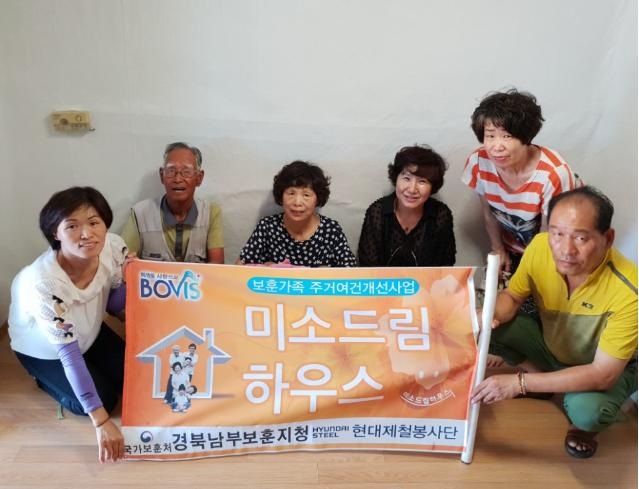 [이재영 기자] 경북남부보훈지청(지청장 김대훈)은 지난 20일 현대제철 봉사단과 함께 열악한 주거환경에서 어렵게 살고 계신 국가보훈대상자 어르신들을 대상으로 무료로 주거환경을 개선해 드리는 “미소드림하우스”를 실시했다고 밝혔다.