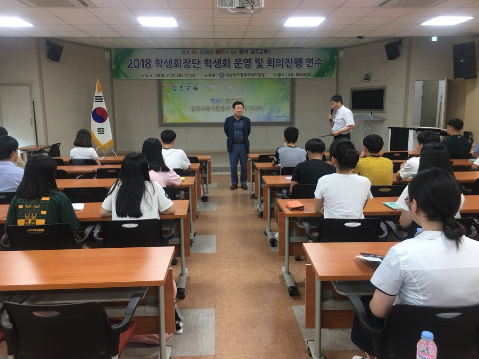 [이재영 기자] 경상북도경주교육지원청(교육장 권혜경)은 지난 24일(화) 오후 2시 경주교육지원청 3층 대회의실에서 관내 초·중·고등학교 학생회장단을 대상으로 학생회 운영 및 회의진행 방법 연수를 실시했다.