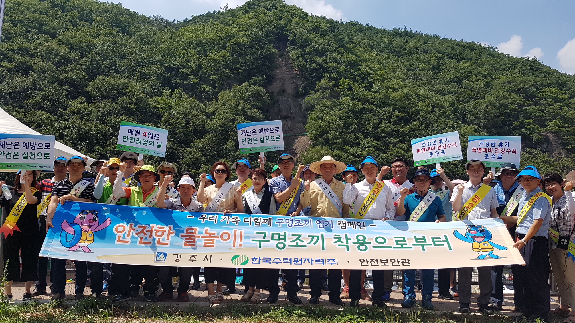 한수원은 경주시 및 유관단체와 함께 청룡폭포 피서객을 대상으로 물놀이 안전수칙 홍보를 하며 아동용 물놀이 안전용품을 나눠 주는 등 물놀이 안전사고 예방 캠페인을 펼쳤다.