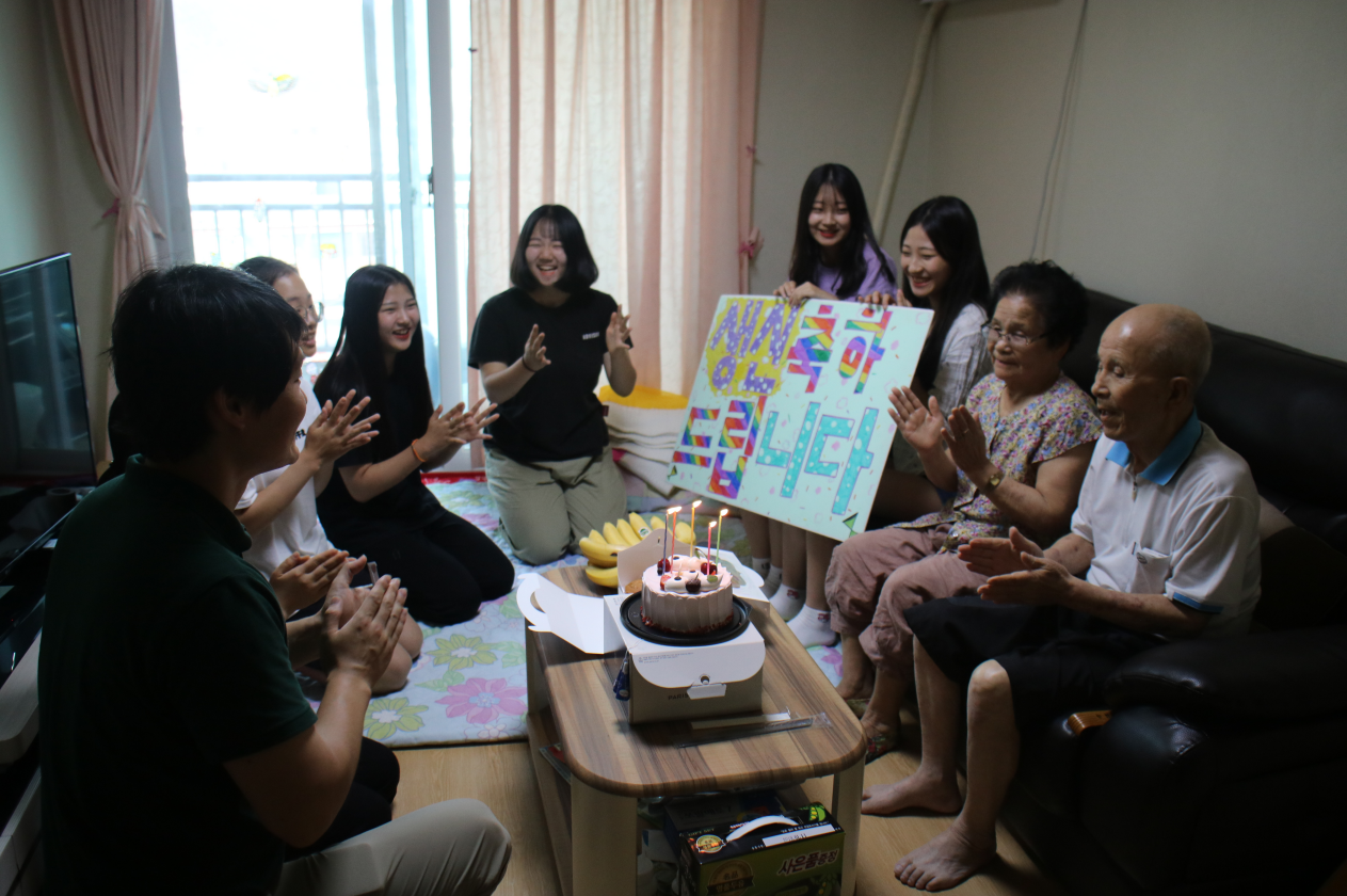 이날 봉사활동은 포항오천고등학교 학생들의 재능기부로 더운 여름날 시원하게 주무실 수 있도록 인견으로 파자마를 직접 만들어 선물을 준비하였고, 경주여자중학교 학생들이 두시간 정도에 걸쳐서 직접 만든 빵과 감사의 메시지를 담은 피켓을 정성껏 만들어 어르신들이 행복한 생신을 맞이 할 수 있도록 생신축하 노래를 부르며 즐거운 시간을 가졌다.