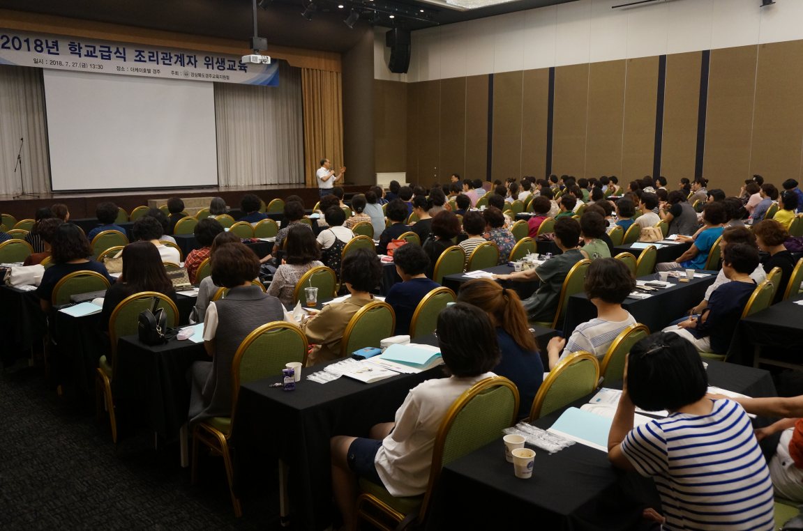 [이재영 기자] 경주교육지원청(교육장 권혜경)은 27일(금) 경주더케이호텔에서 관내 초, 중, 고, 특수학교 및 공립유치원 조리종사자 300여명을 대상으로 “학교급식 위생 교육”을 실시했다.