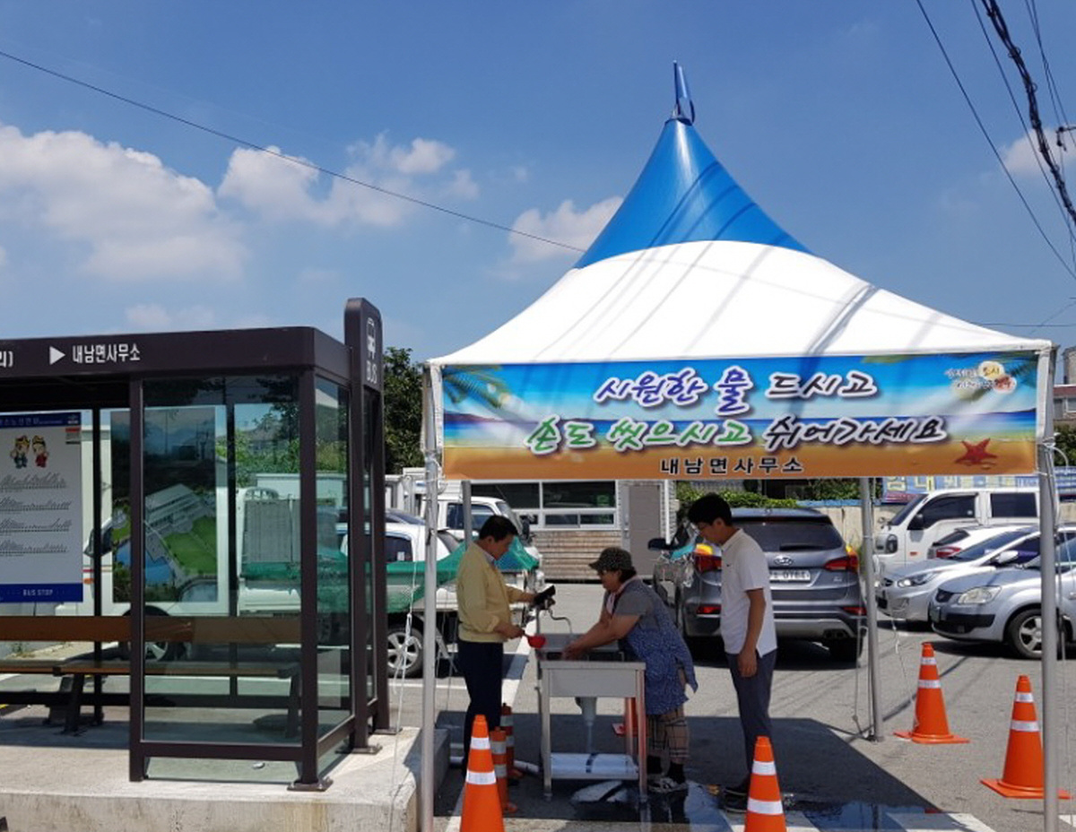 지난 25일 강동면에서는 새마을협의회와 부녀회와 함께 승강장이 없는 버스정류장에 그늘막 쉼터를 설치하고, 내남면에서도 찜통더위 극복을 위해 유동인구가 가장 많은 이조리 로타리 버스승강장에 그늘막 쉼터와 임시 음용수대를 설치했다.