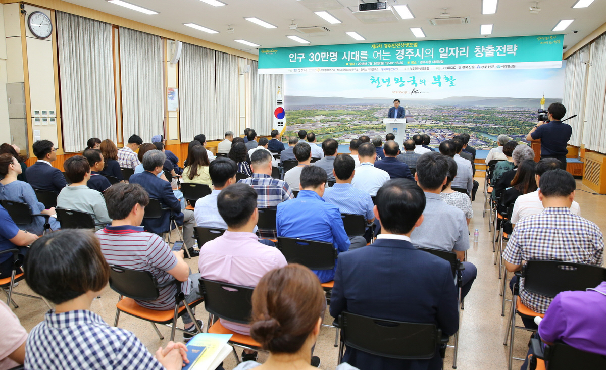 경주시는 30일 대회의실에서 ‘인구 30만명 시대를 여는 경주시의 일자리창출 전략’이라는 주제로 ‘제5차 경주안전상생포럼’을 개최했다.