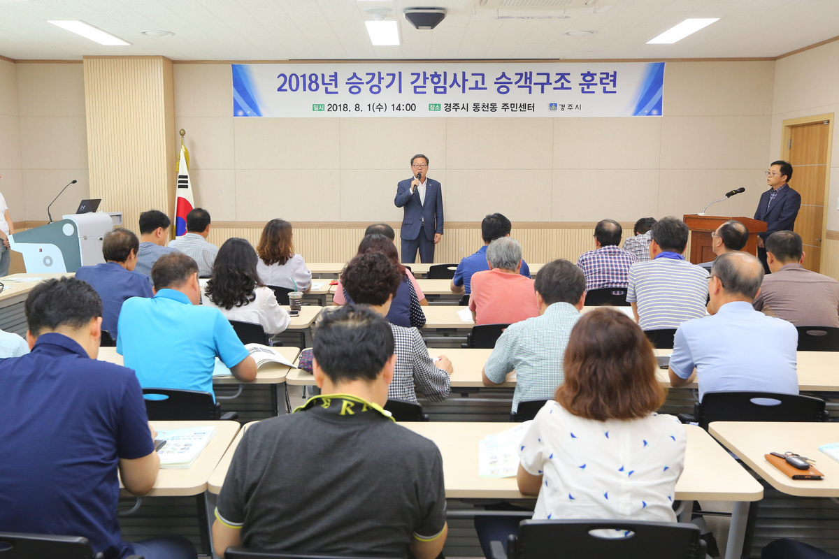 이 날 훈련에 앞서 한국승강기안전공단에서 각종 승강기 사고사례와 승강기 안전의 중요성 및 구조절차 등을 설명하고, 경주소방서와 승강기 유지보수업체인 (주)쉰들러엘리베이터의 협조로 승강기 사고상황을 가상한 실제 훈련이 이뤄졌다.
