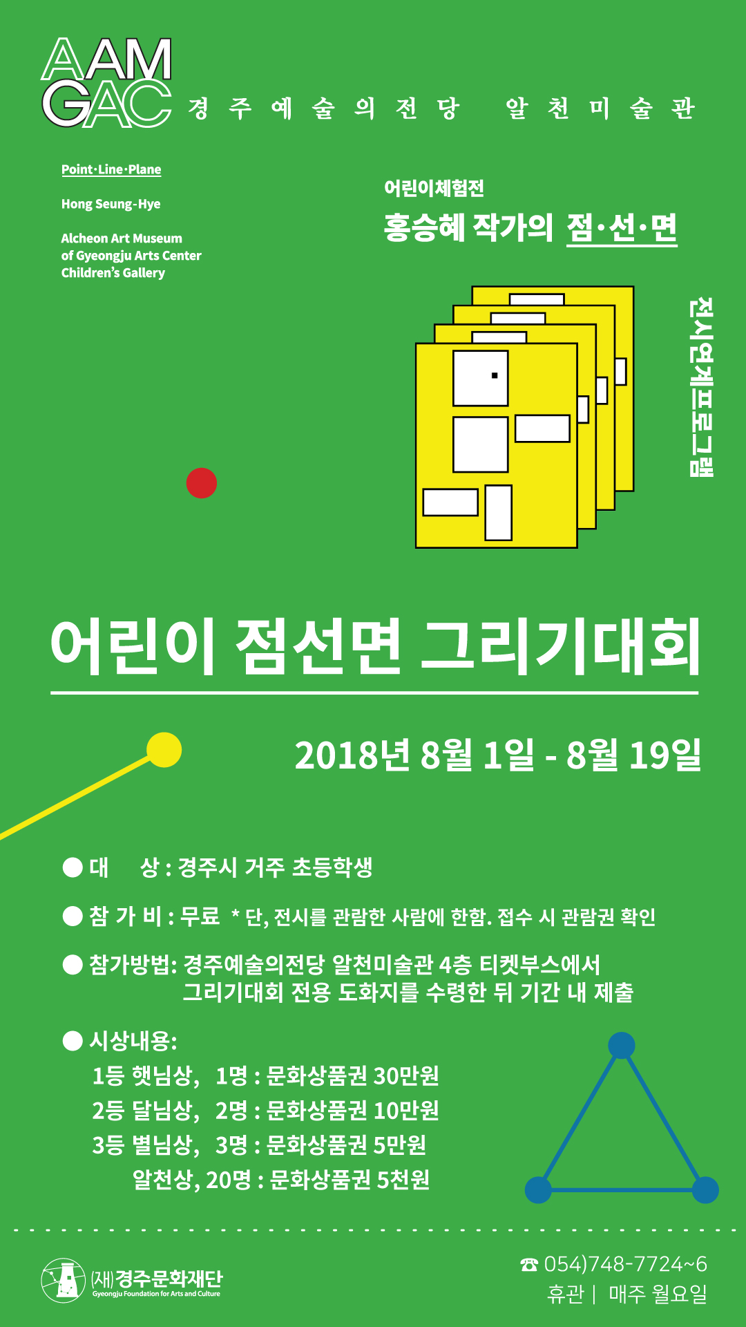 ‘어린이 점선면 그리기대회’는 알천미술관 어린이갤러리에서 열리고 있는 ‘어린이체험전 : 홍승혜 작가의 점·선·면’과 연계된 프로그램으로 방학동안 전시를 관람하기 위해 온 어린이들이 전시를 보고 느낀 점을 자유롭게 표현하고 즐겁게 참여할 수 있는 기회를 마련하고자 기획됐다.