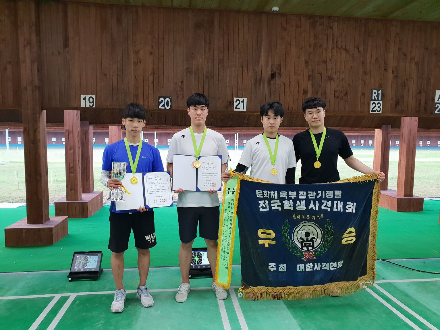 전국 학생선수 2천여명이 참석한 이번 대회에서 공기소총 단체전에서 출전한 유승희(스포츠과학3), 남태윤(스포츠과학2), 한창희(스포츠과학4), 손재형(스포츠과학1) 선수는 1876.9점을 합작하여 인천대와 한국체대를 누르며 값진 금메달을 획득했다.