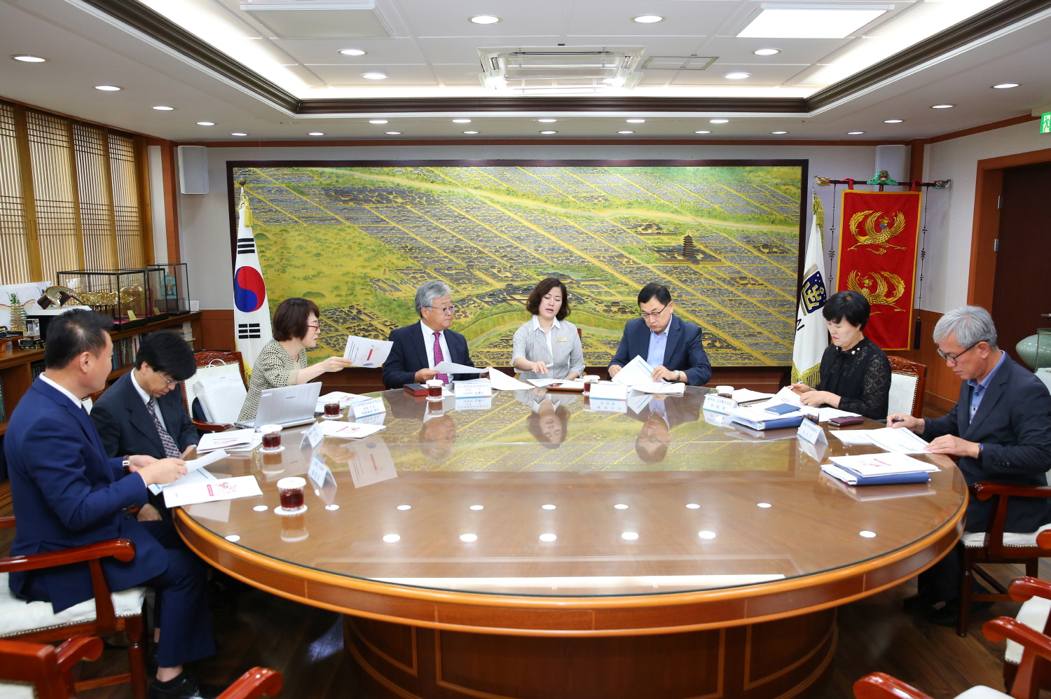 | ↑↑ 일본 요미우리신문 서부본사 사장 일행이 23일 경주시를 찾아 시장 취임을 축하하고 대회 홍보 협의를 하고 있다.. |