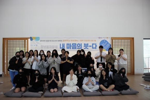 이번에 개최된 ‘내 마음에 붓-다’는 동국대 WISE캠퍼스 대학혁신지원사업의 일환으로 지역 연계 명상 프로그램으로 경주지역 다문화가정 학생들의 정서적 안정을 돕고, 생활의 지혜를 자신의 삶에 적용할 수 있도록 돕기 위해 마련된 불교기반의 인성 및 생활교육 실천프로그램이다. 운영기간은 2023년 4월 28일부터 6월 8일까지 총 6주차동안 진행될 예정이다.