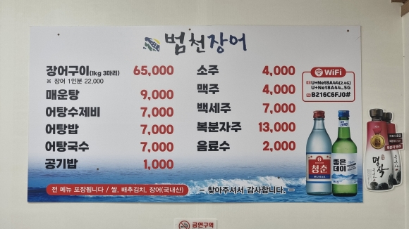 식당의 주메뉴는 장어구이 1KG 65,000원(1인분 22,000원), 매운탕 9,000원, 어탕수제비 7,000원, 어탕밥 7,000원, 어탕국수 7,000원으로 타 업종의 돼지국밥, 곰탕, 갈비탕, 한식류, 중식류 등에 비해 훨씬 저렴한 7,000원대의 가격을 유지하고 있는 경주의 유일한 저비용 고효율 음식점으로 고객들이 부담 없이 즐길 수 있다.