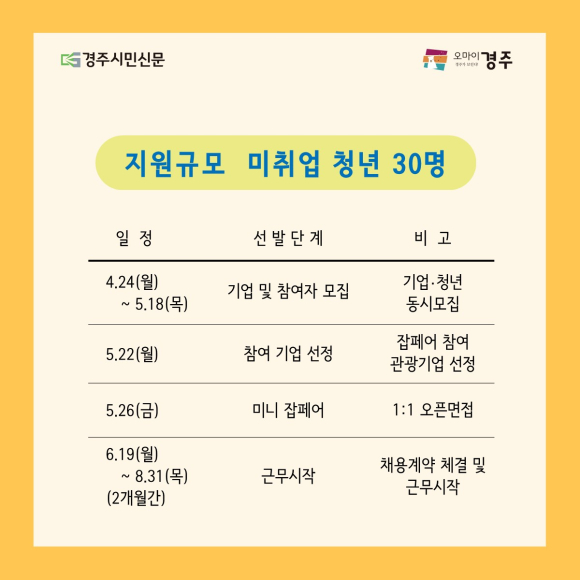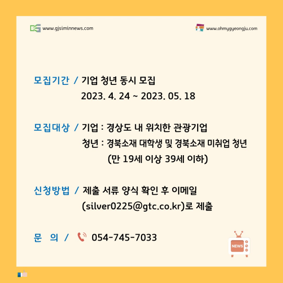경북문화관광공사, 청년 인턴 지원 사업 참가자 모집