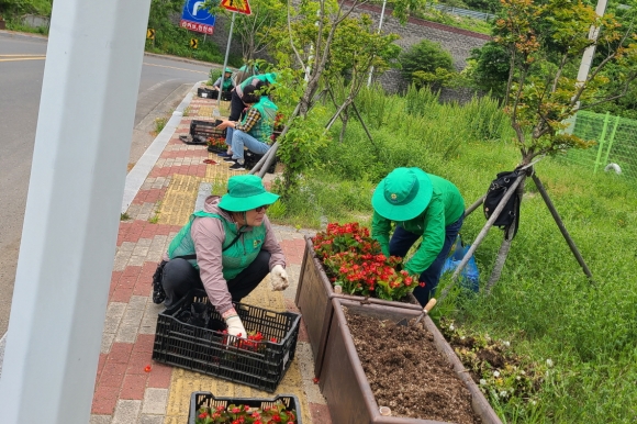 이들은 아침 일찍부터 모여, 무성하게 자란 잡초를 제거하고 와읍교차로 화분대, 주민자치센터 화단, 어일소재지 도로난간 걸이식 화분 등에 꽃을 심는 데 힘을 쏟았다.