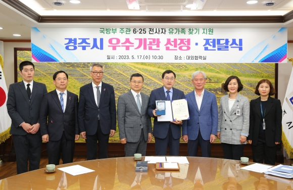 [오마이경주/경주시민신문=김경미기자] 경주시는 국방부에서 주관하는 ‘6‧25 전사자 유가족 찾기 지원사업’ 우수기관에 선정되는 쾌거를 이뤘다.
