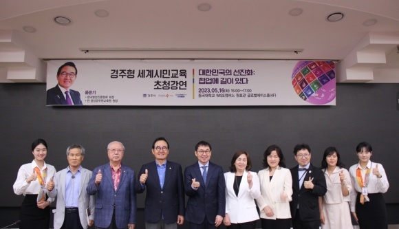[오마이경주/경주시민신문=김경미기자] 동국대 WISE캠퍼스는 지난 16일 동국대 WISE캠퍼스 원효관 글로벌에이스홀에서 경주시 후원으로 윤은기 한국협업진흥협회 회장(전 중앙공무원교육원장)을 초청해 “경주형 세계시민교육 초청강연”을 개최했다.