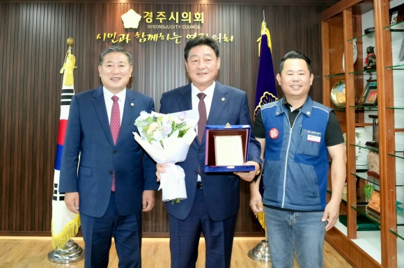 [오마이경주/경주시민신문=김경미기자] 전국공무원노동조합 경주시지부(지부장 윤묘덕)는 9일 경주시의회 의장실에서 ‘제10회 경주시 멋진 간부공무원 및 시의원 선발’에서 ‘멋진 시의원’으로 선정된 이동협 경주시의회 부의장에게 인증패를 전달했다.