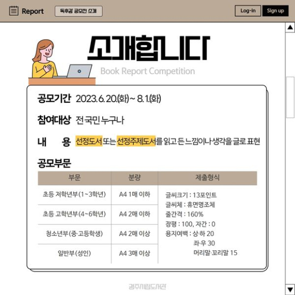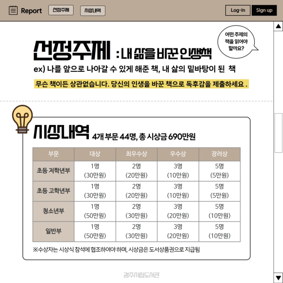 - 공모내용 : 선정도서 또는 선정주제도서를 읽고 든 느낌이나 생각을 글로 표현