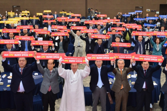 끝으로 주낙영 시장은 “2025 APEC 정상회의는 한국의 역사문화와 경제적 기적을 세계 정상들에게 알리고 지방 균형발전과 소규모 도시개최라는 APEC 이념가치의 최적도시는 오직 경주뿐이다.”라며, 정상회의 유치 시 경북도내 생산유발효과 9720억, 부가가치유발 4654억, 취업유발 7908여명의 성과가 기대된다며, 경주 미래 100년 대계 시금석이 될 국제행사를 반드시 유치하여 APEC 역사에 길이 남을 성공행사가 되도록 최선을 다 하겠다.“라고 전 국민들의 성원과 협조를 당부했다.