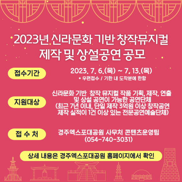 - 경주엑스포대공원 및 경북도 홈페이지 게시판에 공고, 접수 7/6~13일 -