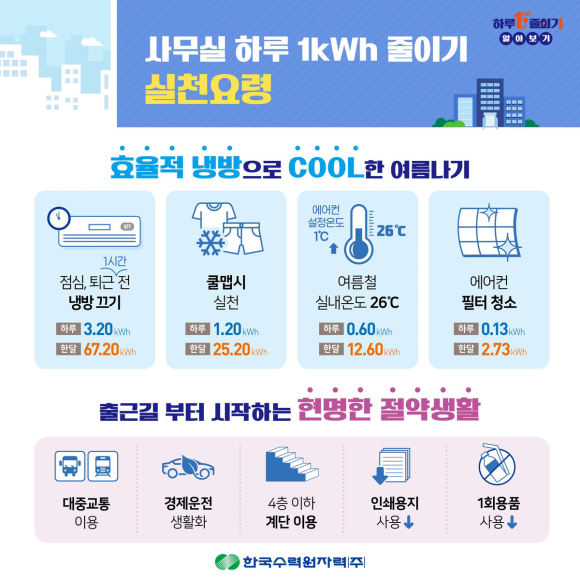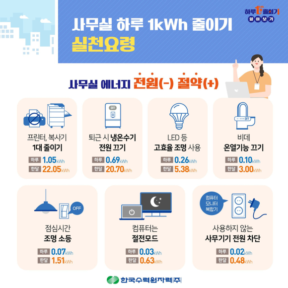 사무실에서 지키는 절약 습관만으로 에너지를 효과적으로 아낄 수 있답니다.