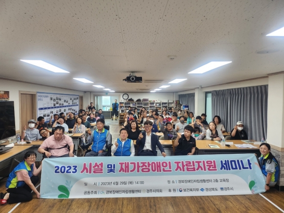 [오마이경주/경주시민신문=김경미기자] 경북장애인자립생활센터(센터장 박귀룡)는 29일 (목) 경북장애인자립생활센터 2층 교육장에서 경주시의회 임활 복지행정위원장, 지역장애인, 활동지원사, 경주시 장애인 유관기관 종사자 등이 참여한 가운데 2023 시설, 재가장애인 자립지원 세미나를 실시했다.