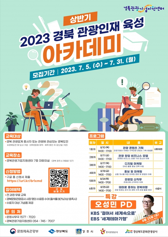 [오마이경주/경주시민신문=김경미기자] 경북문화관광공사(사장 김성조, 이하 공사)는 경북 도내 관광업계 관련 (예비, 기존) 재직자 및 관광에 관심 있는 경북도민을 대상으로 ‘2023 경북 관광인재 육성 아카데미’를 진행한다.