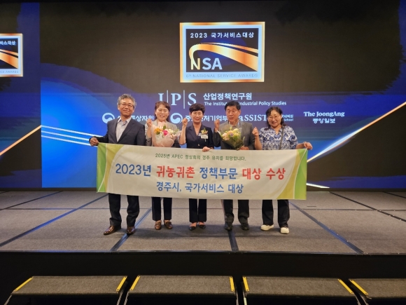 [오마이경주/경주시민신문=김경미기자] 경주시가 산업통상부, 중소벤처기업부 등이 후원하고 산업정책연구원(IPS)이 주최하는 ‘2023년 국가서비스대상’에서 ‘공공행정서비스 귀농귀촌 정책부문’ 대상을 수상했다고 5일 밝혔다.