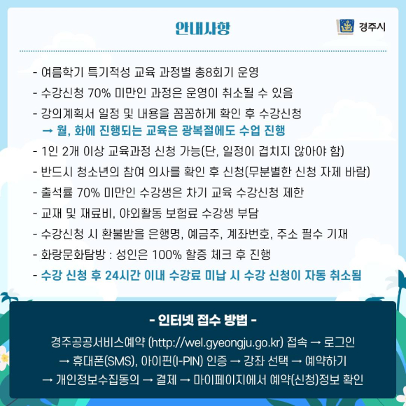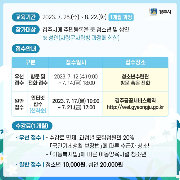 2023년 경주 청소년수련관에서 즐기는 여름! <청소년 특기·적성 교육>